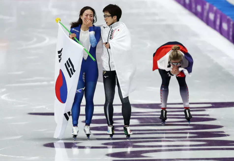 撮影のために並ぼうとする日本人選手、すると韓国人は選手の肩に軽々しく触れて肩を組もうとする
