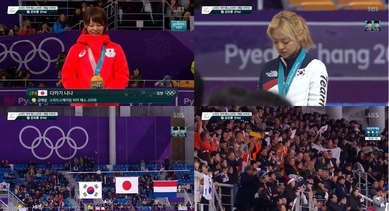左巻きの日本のメディアだよ。日本の表彰からカットするだろ。オリンピックに政治を持ち込むなと、何度言われれば韓国人は理解するのかなあ、呆れるしかない。