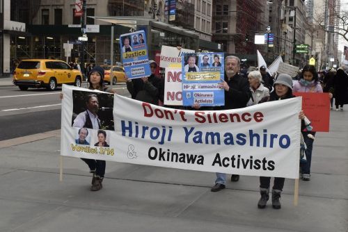 沖縄活動家の山城博治の無実訴え、コリアン団体が?、NYで?デモ