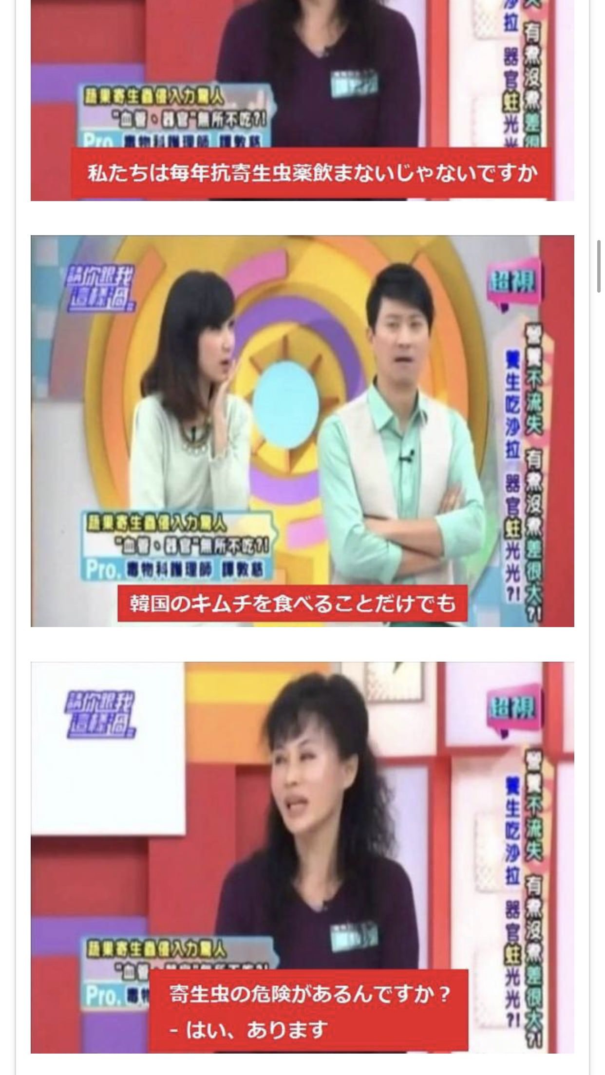 料理人には当たり前すぎて、テレビや雑誌で注意奮起などをする意味がない朝鮮人が抗寄生虫薬なんて飲むわけないだろ