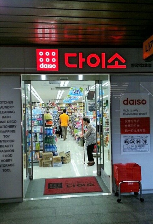 日本語の「ダイソ」そのものをハングルにしているね。(ハングルに長音記号は無い。)