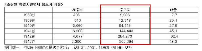 さて朝鮮人が日本の軍隊に何人いたのかまったく考慮されてないね。