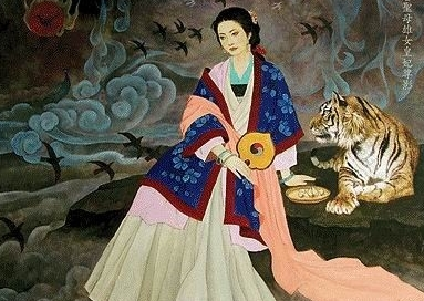 곰은 여성이 되었고, 호랑이는 옆에서 지켜보고 있다.