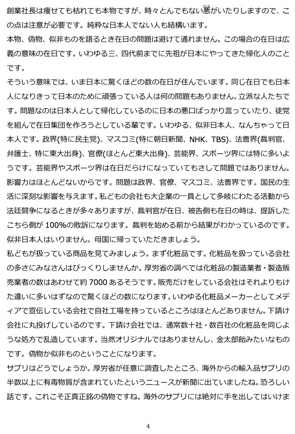 DHC会長「日本には驚くほどの数の在日がいる 似非日本人はいらない。母国に帰れ」