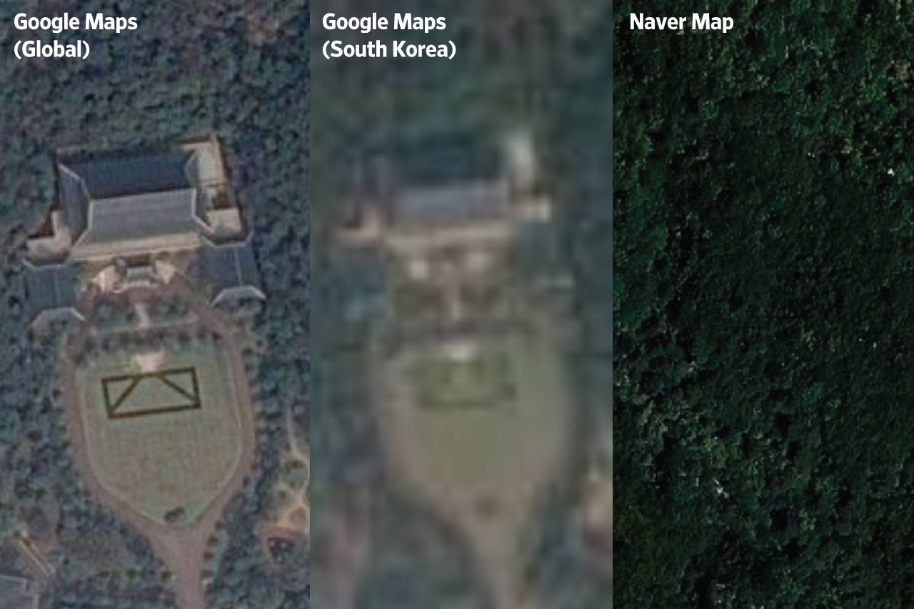 韓国の青瓦台(大統領官邸)はグーグルマップ(ワールド)では見えるが、グーグルマップ(韓国)ではぼやけ、韓国ネイバーの地図サービスではカモフラージュ- 466