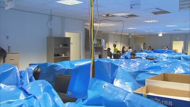 IBCに入っているNHKのスペースでも各所で天井から水が落ちてきたため、多くの机の上にシートが広げられ、機材やパソコンを守るなどの対応に追われました。