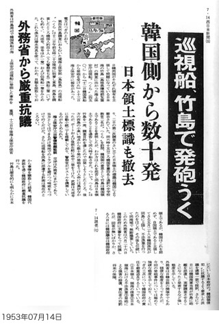 ポツダム宣言により武装放棄された状態でサンフランシスコ平和条約により主権が回復したとは云え、当時日本が持ち得た武力は「警察予備隊」つまり治安維持部隊であり陸上兵力しかない。その様な状況で1952年、李承晩が何の法的根拠も無く、支持する国もないまま勝手に日本海域の一部に「海洋主権線(平和線)」引き、米軍が射爆場指定を解除した竹島を狙い「島根県隠岐郡五箇所村竹島」の柱標を撤去、周辺海域で以前から漁を行っていた漁船を国際法を無視し取り締まりを始めた。その際、漁船を攻撃する武装した漁船や強武装の警備艇に対し漁船の護るため丸腰の海保巡視船が中間に割り込み被弾するケースが多発した。それでも合計で船328隻が拿捕され、拿捕時に44名が死傷し、3929人が抑留された。