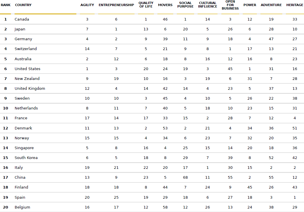 Future 国家ブランド指数、世界最高の国...1位.2位日本