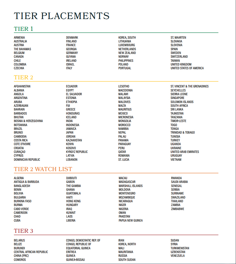 중국은 3티어. 최악의 인신매매 국가