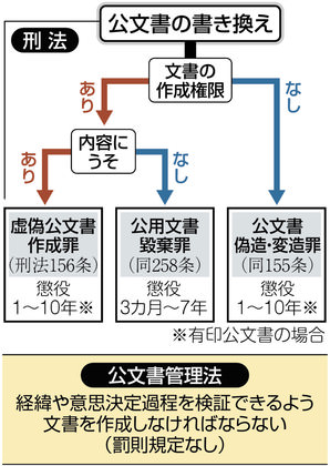 書き換えがあった14の文書の内訳は、貸し付けに関する決裁書が2つ、売買に関する決裁書が1つ、特例に関する稟議(りんぎ)書が2つ、これらに付随する文書が9つだった。1つの文書から交渉の経緯などを削除しようとしたところ、玉突きで次々に書き換えせねばならなくなったという。