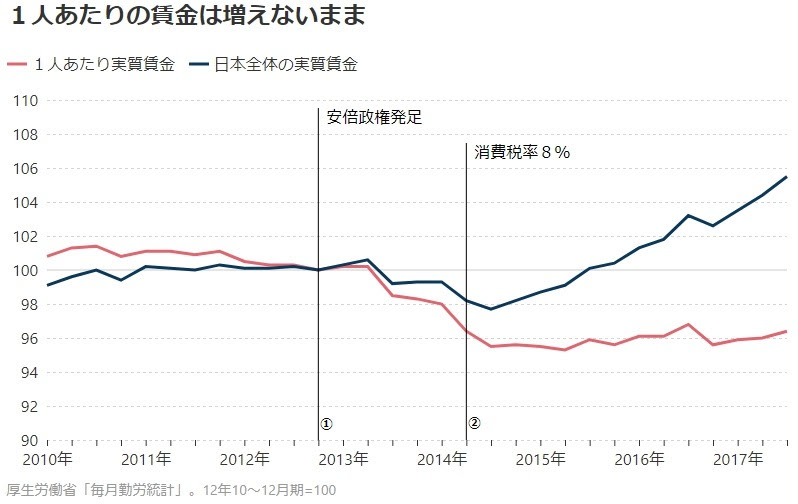一人当たりの実質賃金が下がったのは、賃金の高い団塊世代が定年を迎えたこと。