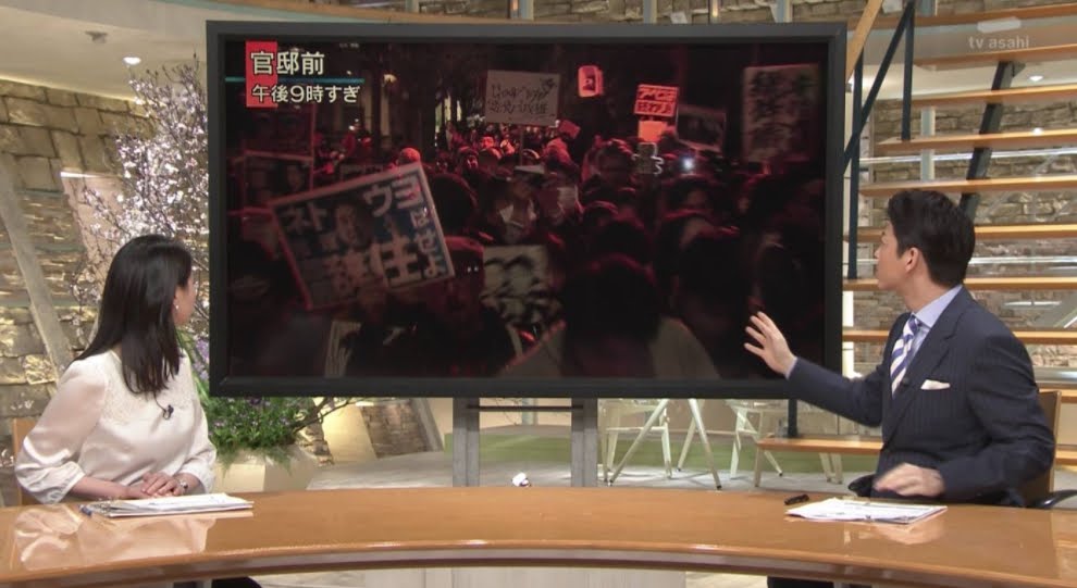 총리관저 앞에서는 많은 시민이 모여 내각 총사퇴를 촉구하는 등 사태가 급속히 확산하고 있다.