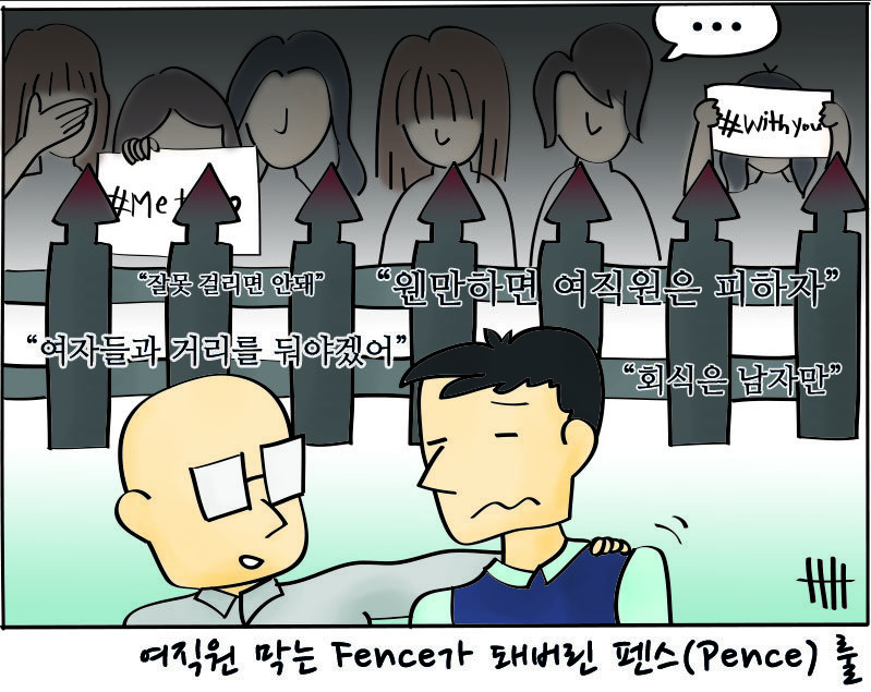'차라리 직장 여성 동료와 접촉하지 않겠다.' 가 유행하고 있으며, 이것이 펜스 룰이다.