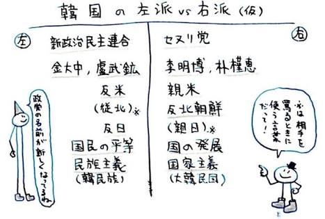 사실상 한국에서 좌파정당은 소수. 보수쪽이 우세日本でも自民党幹事長を、あの小沢一郎がやってた時代があったんだから、時代はかわるもんだわ。