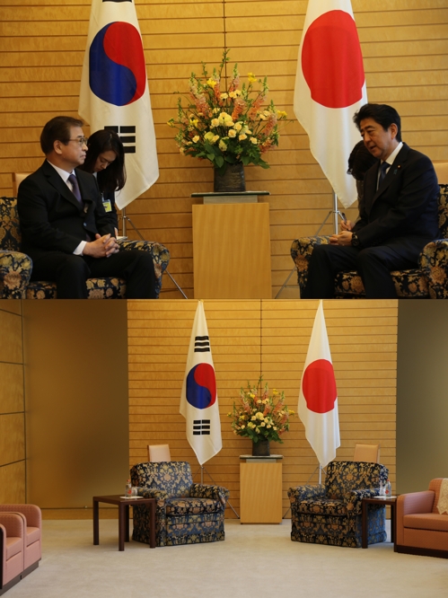 安倍首相と同じ椅子で平等に扱われたと大喜びする韓国メディア