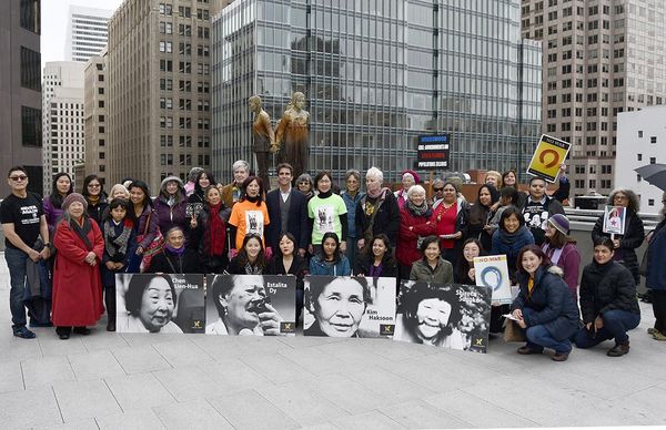 沖縄からも参加 SFの慰安婦像の前で世界女性の日を祝う