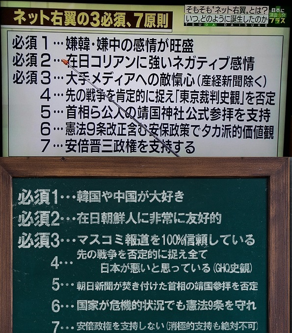 よって、イシュー化された対立ネタになってしまう。一応、以前テレビ朝日で放送されたネット右翼の定義をおさらい。