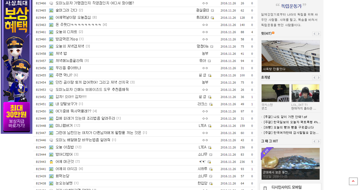 하루 인증 음식만 천개 가까이 올리는 게시판이다.>>134