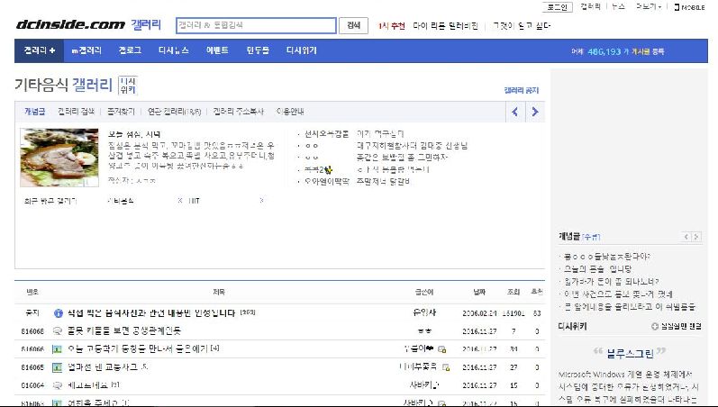 한국 최대사이트 디시인사이드 음식갤러리를 추천다