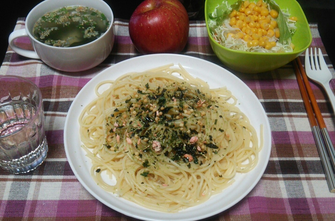 パスタとサラダだけでは食事の量が少なかった。