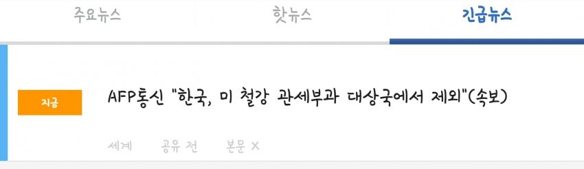 (속보) 한국, 美 철강 관세부과 대상국에서 제외