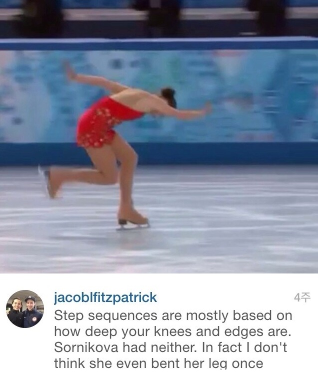 BBC 역시 소트니코바의 스텝 이야기로 떠들고 있었으니까 찾아보면 좋은.두번째로 '실제로 소트니코바가 무릎을 잘 쓰고 있고 김연아의 스텝보다 훨씬 좋았던' 이라고 하면..