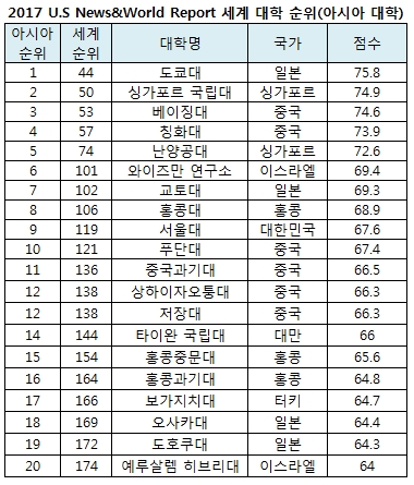 東京大学1位>>>>>京都大学7位>>>>ソウル大学9位