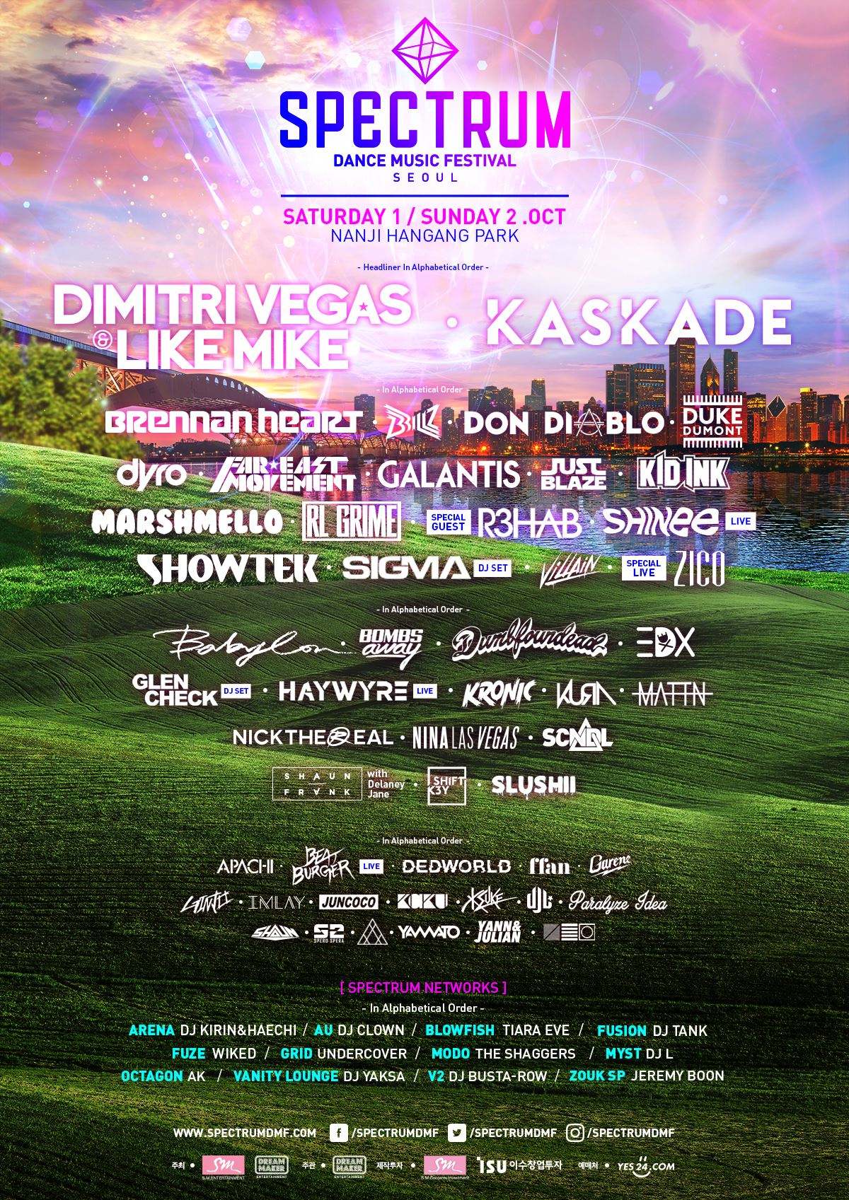 최근에는, 꾸준히 열리는 대형 Electronic Festival 5개 정도 존재. 사진은 얼마 전에 열린, SM Entertainment 주최의 Spectrum Music Festival 라인업입니다.