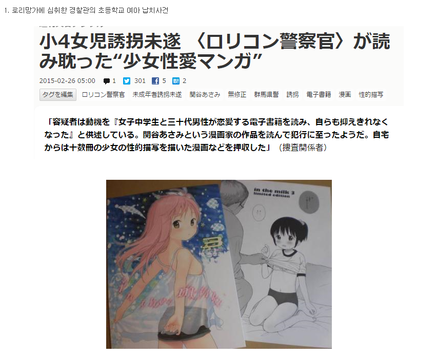 하지만 그것가자고 일본은 우수 한국은 쓰레기라고 평가하는건 어디까지나 너의 주관적인 의견国連「日本は児童ポルノ漫画規制しろ!」→中心人物に児童性的虐待の過去が発覚、逮捕へ