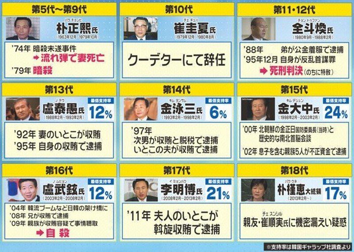 韓国大統領の末路って死か投獄が目立ちますね