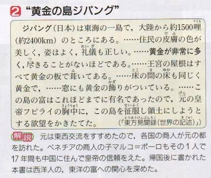 マルコ・ポーロの「世界の記述」(東方見聞録)に登場する「黄金の国・ジパング(ZIPANG・ZIPANGU) 」と紹介されたが、各国語に翻訳過程で、なるべく原音に近く発音する為には、Z音がJ音が発音が近くなる国もあった。
