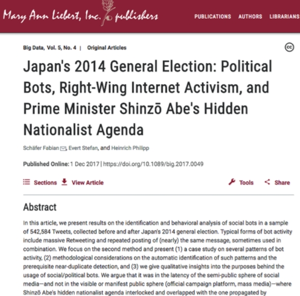 쉐퍼 박사는 트윗내용을 분석해 2014년 중의원 선거에서 아베 정권은