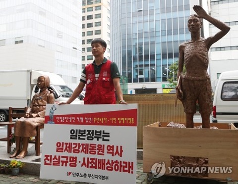 【釜山聯合ニュース】釜山の市民団体が、メーデー(5月1日)に合わせて日本による植民地時代に朝鮮半島から強制徴用された労働者を象徴する像の日本総領事館前への設置を推進しており、釜山市と総領事館が神経を尖らせている。