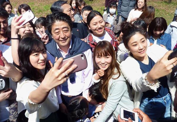 安倍首相、花見で大人気