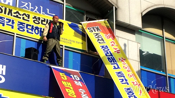 全国金属労働組合STX造船支会(支会長ゴミンチョル)は、3月27日から継続して座り込みを行っている。4月1日の午後、民主党慶南支部の前に50人の労働者が集まって座り込みを継続した、支部事務所内では、まだ30人余りの労働者が占拠座り込みを行っている。