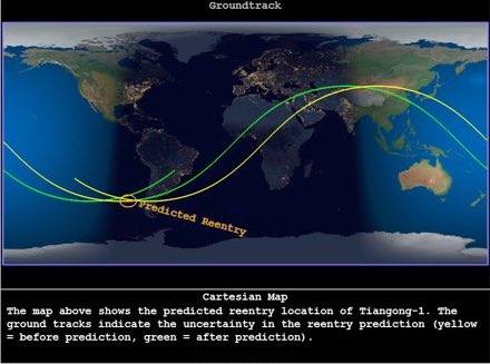 中国の宇宙ステーションチェングン(天宮)1号韓国時間で2日午前9時16分頃、南太平洋に墜落したことが確認されることにより、国内に降りられた宇宙の危機警報が解除された。