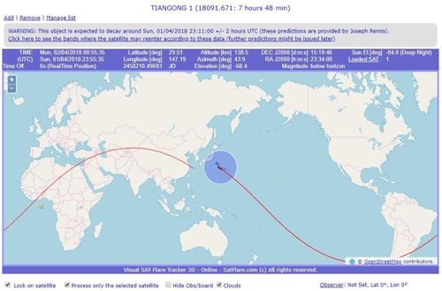 このソウル聯合ニュース「韓国天文研究院」発表の、中国衛星の落下予想図も、醜悪な作為が見て取れる。