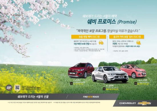 シボレープロミスを通じて韓国GMは保証期間を2年増やし、「5年または10万㎞」保証サービスを提供して、3年後の中古車の価値を55%まで保証する「中古車の価値を保証分割払いプログラム」も運営する。