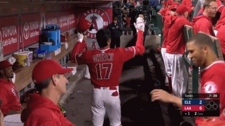 ベンチでは、メジャー1号の際に同僚たちがあえてダグアウトに戻ってきた選手を”無視”するサイレントセレブレーションの後、もみくちゃにされる手荒い祝福を受け、スタンドはスタンディングオベーションで大谷を称えた。大谷は大歓声にヘルメットを脱いで応えた。