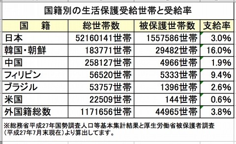 在日韓国人だけ飛びぬけて生活保護受給者が多い、その数16%