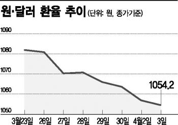 4日、ソウル外国為替市場でウォン及びドルの為替レートは午前11時11分あたり前取引日より1.1ウォン上がった1055.3ウォンで取引されている。前日の為替レートは1054.2ウォンで取引を終えながら、2014年10月29日(1047.3ウォン)以来、3年5ヶ月ぶりに最低値を記録した。為替レート下落もかなり急である。韓米自由貿易協定(FTA)の再交渉で為替レートに関連した場合協約があったニュースが伝えられた。先月23日の終値(1082.2ウォン)と比較すると、28ウォンや下落水準だ。7取引日ぶりのことだ。