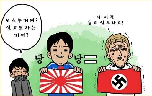 誰かが旭日旗っぽいものをあげて両国でアウトかセーフか判断する。