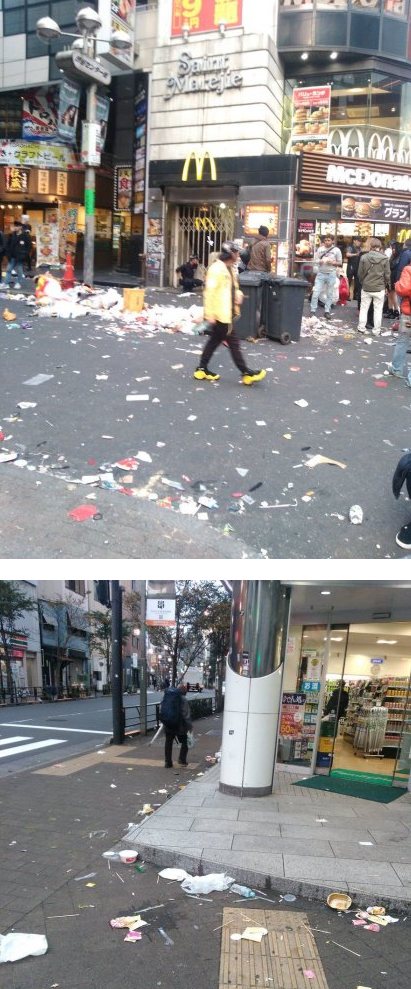 日本 祭りの後のゴミ箱周辺 = 韓国 週末の道路韓国の「学ぶべき」って…(自分以外)って感じで…