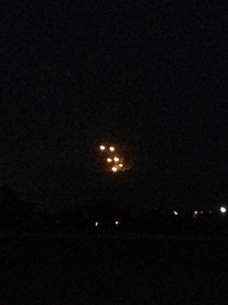 阿蘇方面の上空にオレンジの強い光を放つ謎の飛行物体6つ
