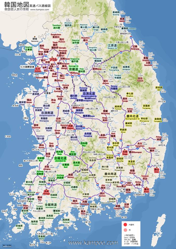 >(陸路 金海または梁山を経、黄山駅に出、黄山江から洛東江に出る=水運利用で昌寧・善山を経洛東江=洛東駅。洛東からは陸路、鳥嶺⇒忠州に出、金遷から水運 ⇒広州)
