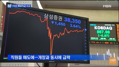朝鮮日報によると、送金を担当する社員が6日、本来なら1株当たり千ウォンの配当を送るべきなのに、単位を誤って千株と入力したという。