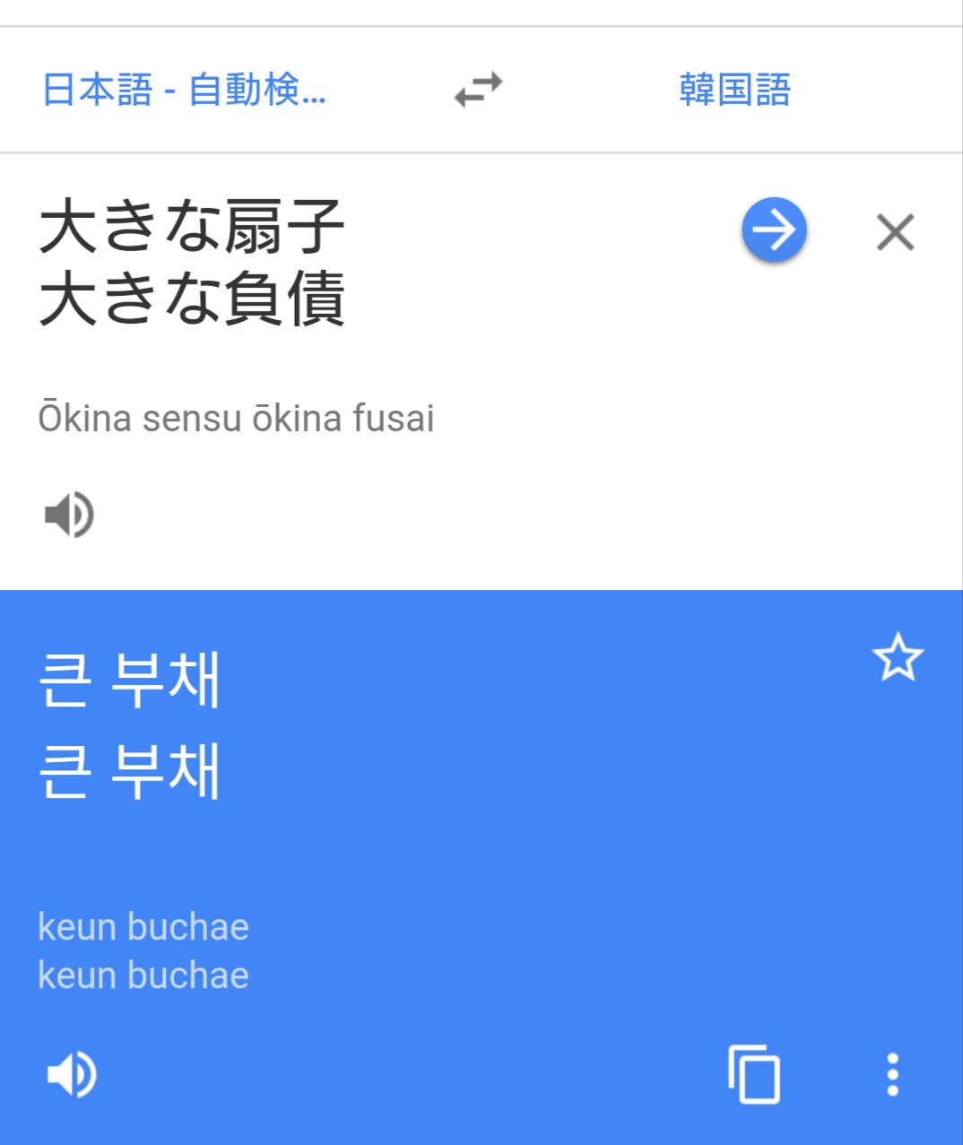 ん?「扇子」と「負債」ってハングルで同じ文字?