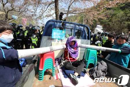 サード反対住民代表と国防部は正午から交渉を行い、サード基地内工事機器をすべて搬出して、追加の機器を一旦は搬入しないことに合意した。