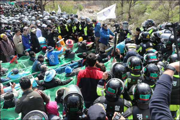 国防部は、衝突の過程で負傷者が発生すると、強制的に解散を停止サド反対住民代表との合意に乗り出した。今回も、国防部が「白旗(白旗)」を挙げることが結論した。国防部は昨年11月、サド基地に搬入したショベルカー、ブルドーザー、フォークリフトなどの工事機器をすべて搬出し、追加の機器も持ち込まないことにした。サード基地内の砂搬入のための再交渉は16日に再開することにした。これにより、現場で対峙していた警察3000人余りが後方に撤退した。