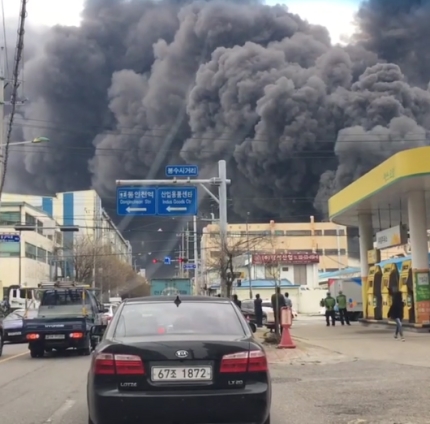 仁川西区の化学工場で「大きな火」... 消防当局「まだ発展中」